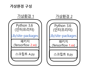 가상환경은 각자 독립된 개발환경을 제공해주기 때문에 이런 패키지 호환에 따른 트러블 슈팅을 해결할 수 있다.